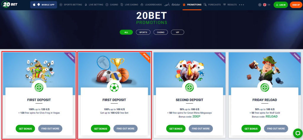 A legjobb fogadási lehetőségek az első befizetés után a 20bet-en